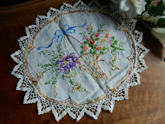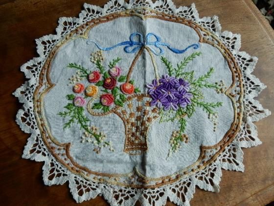 リボン取集と呼ばれている、美しい、ほぼ円形のドイリーです。